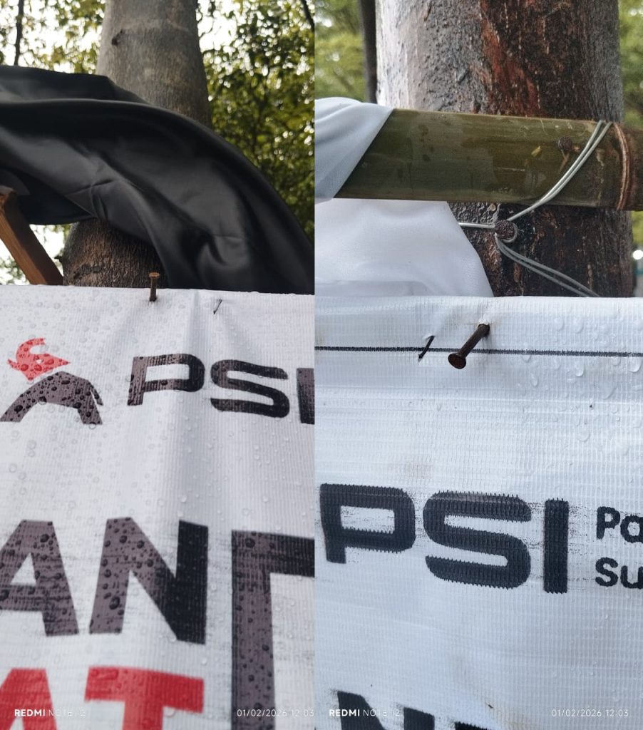 Banner PSI Pakui Pohon di Makassar, Aktivis Lingkungan Tuntut Moratorium Hingga Tanam Ulang Pohon